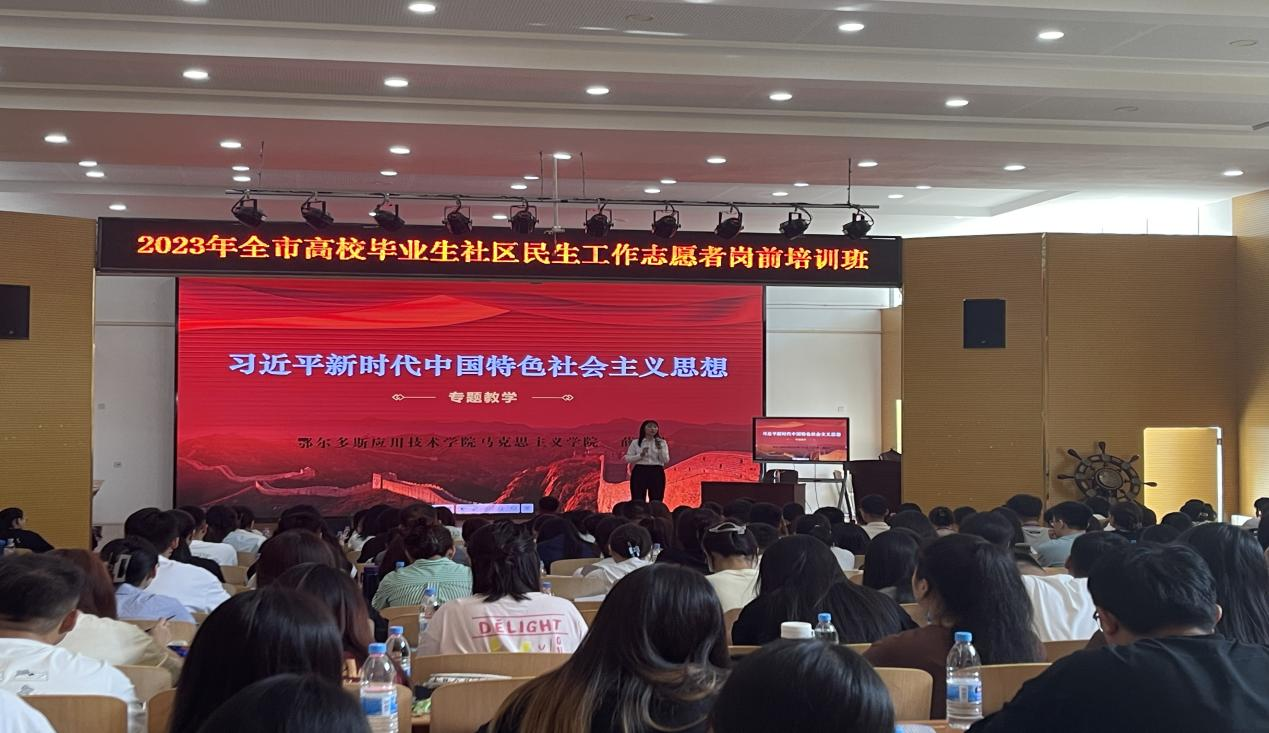 为深入推进习近平新时代中国特色社会主义思想主题教育活动,积极学习贯彻落实习近平总书记考察内蒙古重要讲话重要指示精神,7月25日上午,伟德教师薛志芬受邀为2023年鄂尔多斯市高校毕业生社区民生工作志愿者岗前培训班开展了一场专题讲座。